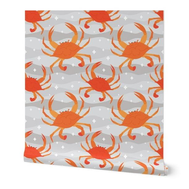 Wallpaper Roll Crab Crabs Beach Nautical Costal Seafood Grey