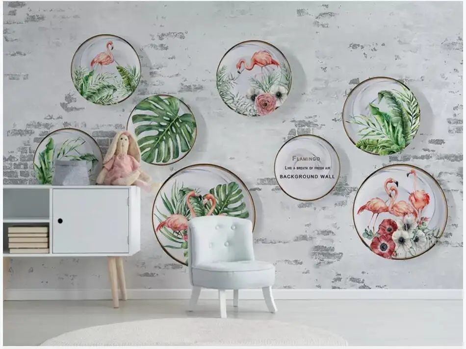 Custom Mural 3d Photo Wallpaper Simple Fresh Leaves Flamingo