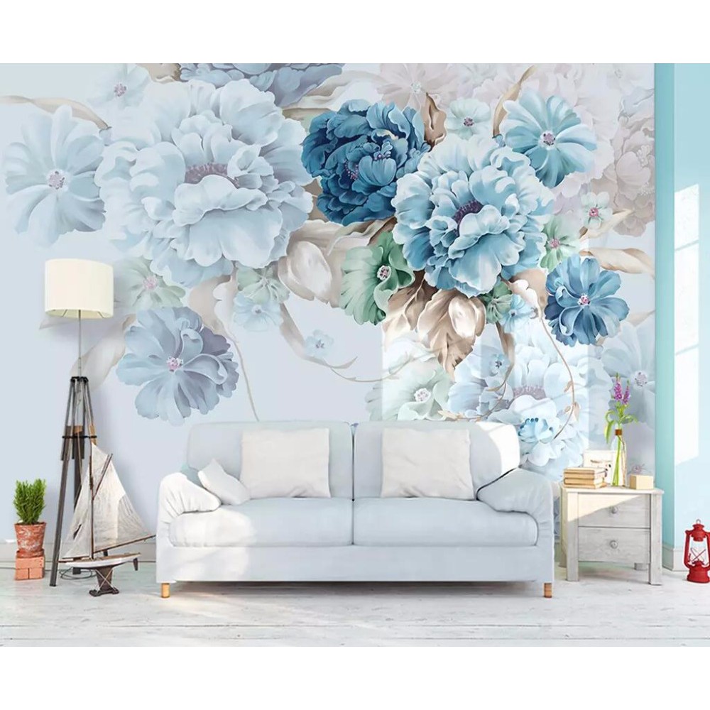 Custom 3d Wall Murals Wallpaper Nordic Blue Vintage Hand Painted