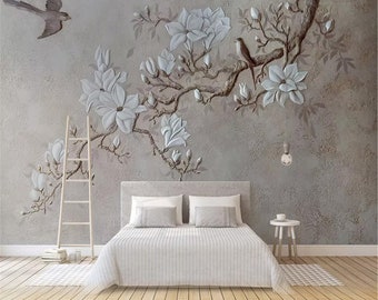 Custom Mural Wallpaper 3d Stereo Magnolia Flowers Peacock Wall
