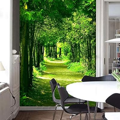Custom Printed Wallpaper Hd Green Forest Small Road Restaurant