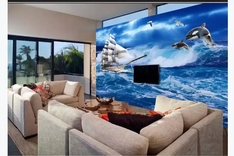 Large Murals Printing Sea Whale Sailing Wallpaper Wall Covering