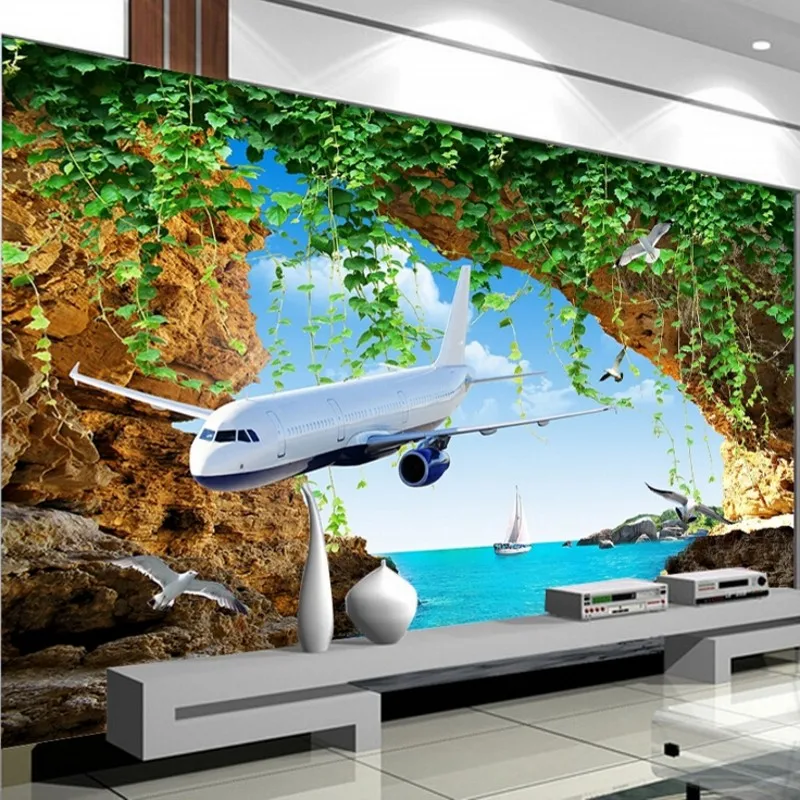 Beibehang Customize Any Size 3d Photo Plane Sea View Wallpaper Live Room Bedroom Wallpaper For Walls 3 D Papel De Parede 3d Wallpaper For Walls Bedroom Wallpaper3d Photo Aliexpress