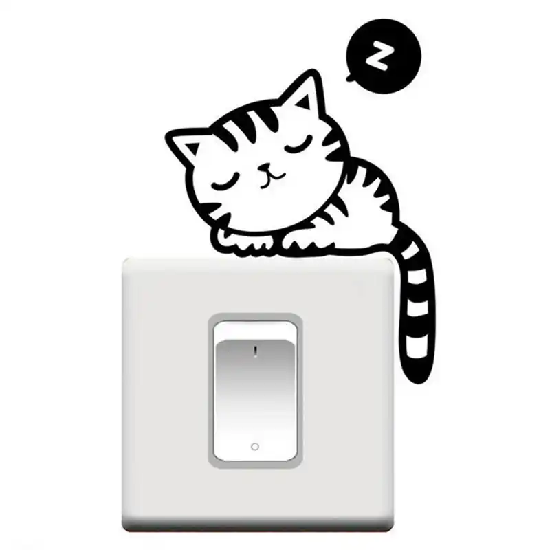 2pcs Cute Cartoon Cat Sleeping Switch Sticker Wall Stickers For