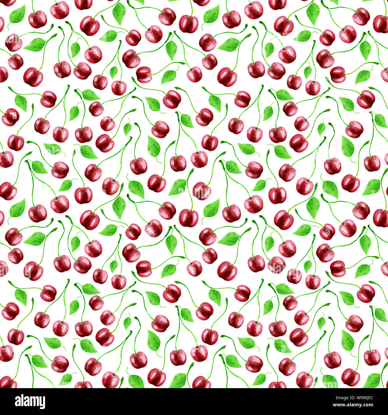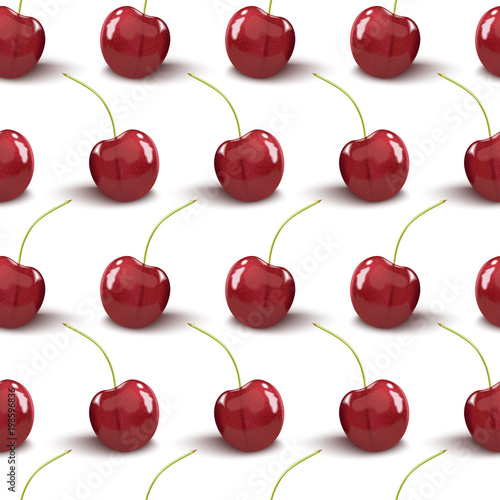 Cute Cherry Seamless Pattern Sweet Red Ripe Berries Isolated On