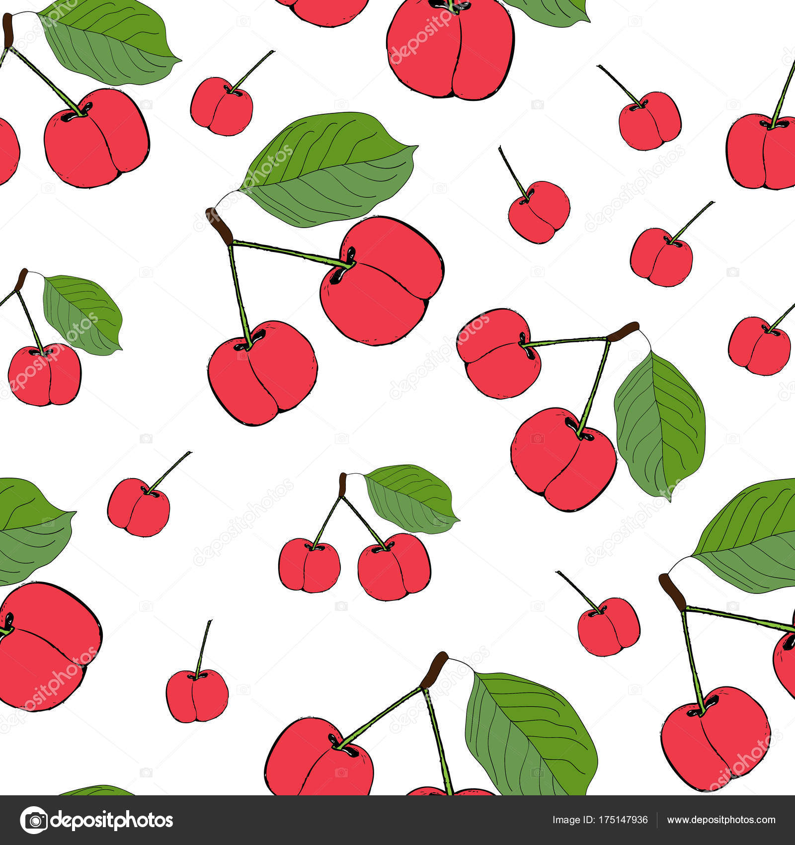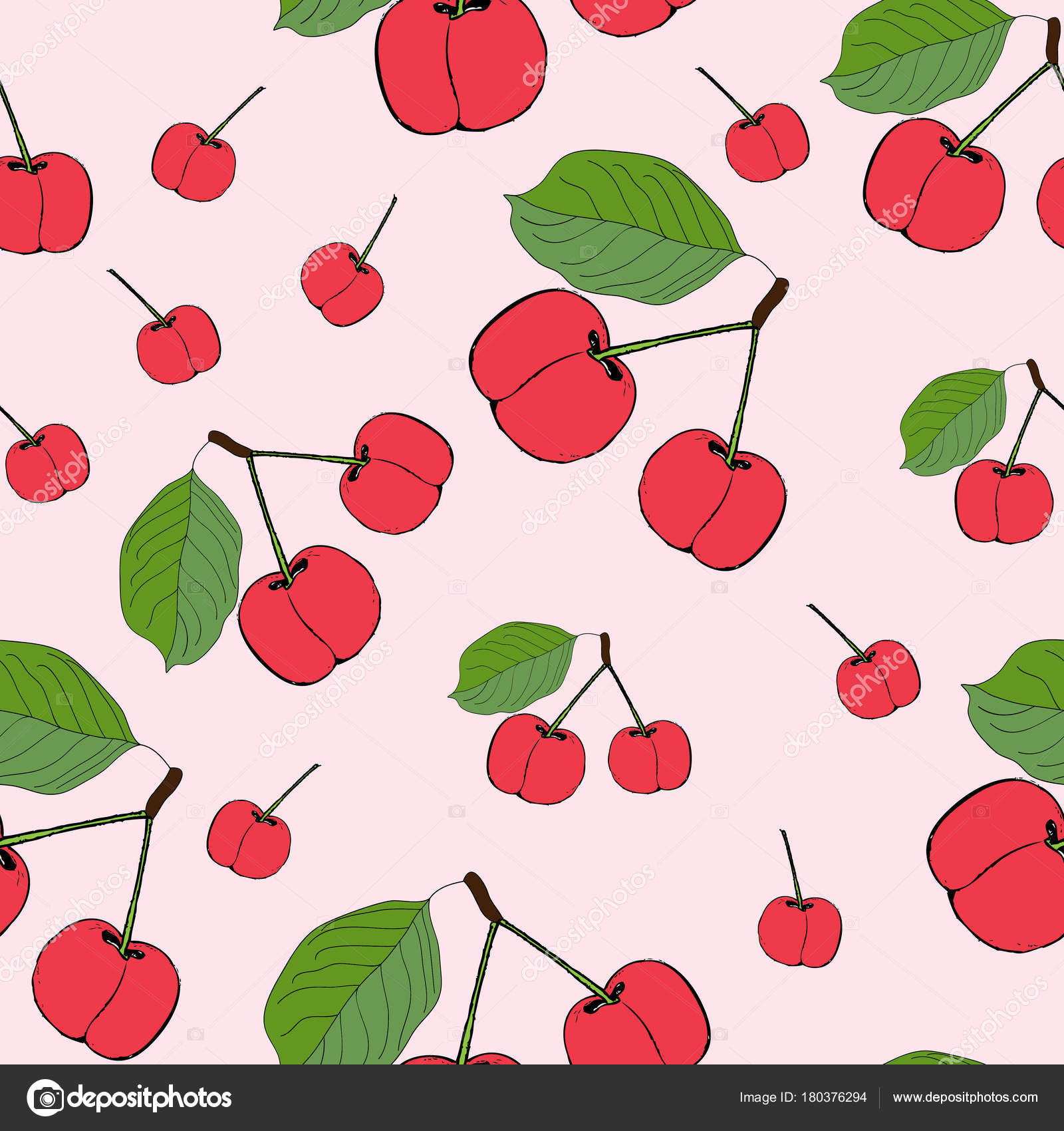 Drawing Red Cherry Seamless Pattern Background Wallpaper Cute Red