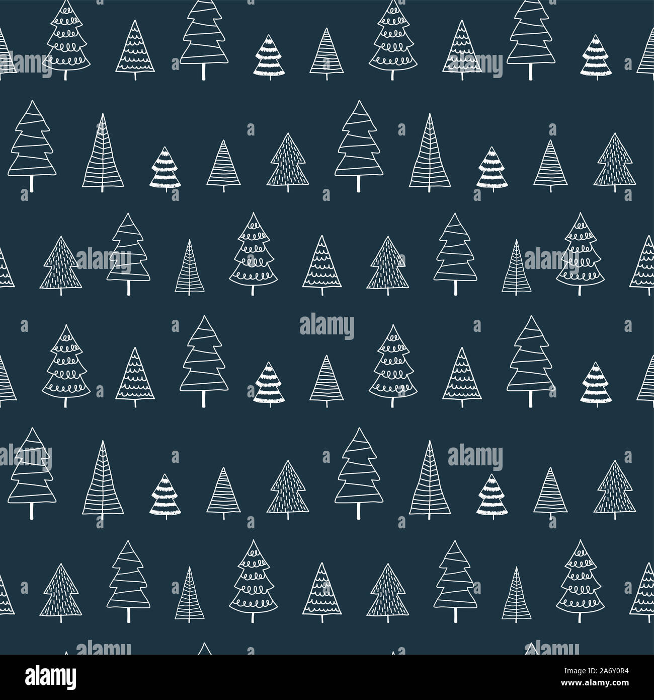 Beautiful And Cute Christmas Trees Seamless Pattern Hand Drawn
