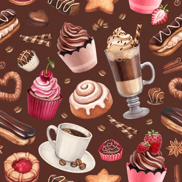 Cute Coffee Character Seamless Pattern Stock Vector Illustration
