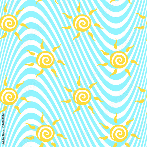 Vector Seamless Pattern With Yellow Sun With Ether Sign On Marine Backdrop Cute Summer Background Cute Colorful Wallpaper For Textile And Fabric Cover Print On Clothes Buy This Stock Vector And
