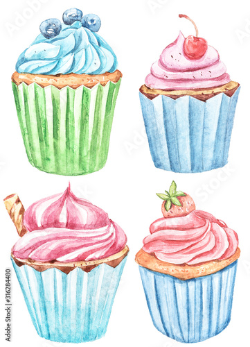 Watercolor Set With Cupcakes Cute Collection Perfect For