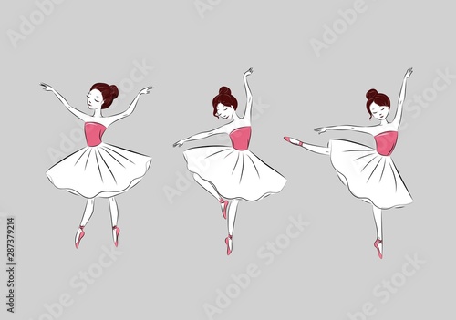 Set Of Cute And Sophisticated Dancing Ballerines Vector