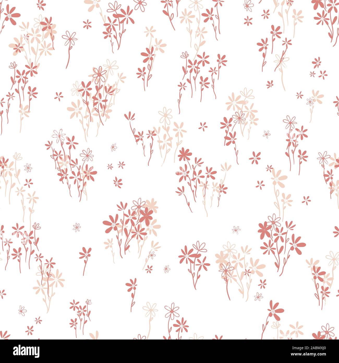 Seamless Simple Floral Pattern Vintage Cute Flowers And Leaves On