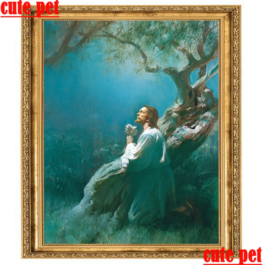 Cute Pet Jesus Prays Diy Mosaic Diamond Painting Wallpaper Cross