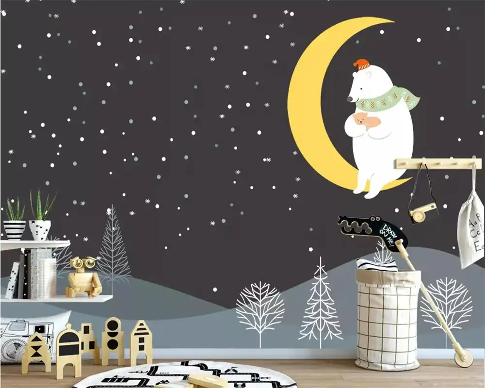 Beibehang Custom Wallpaper Nordic Simple Cute Moon Bear Children S