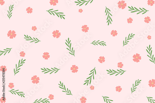 Cute Botanics Pattern With Pink Flower And Green Leaf On Pastel