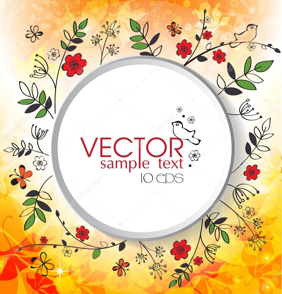 Cute Of Leaf And Orange Flower Frame For Hello Spring Greeting