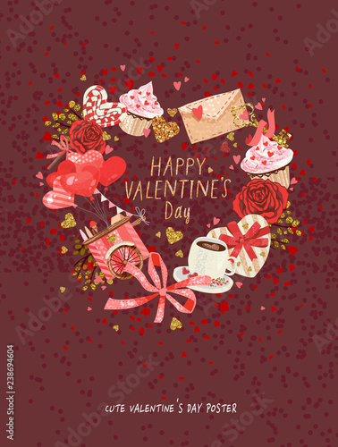 Cute Poster Valentines Day Greetings Heart Shape Frame Vector Illustration Wallpaper Flyers Invitation Poster Brochure Banner Buy This Stock Vector And Explore Similar Vectors At Adobe Stock Adobe Stock