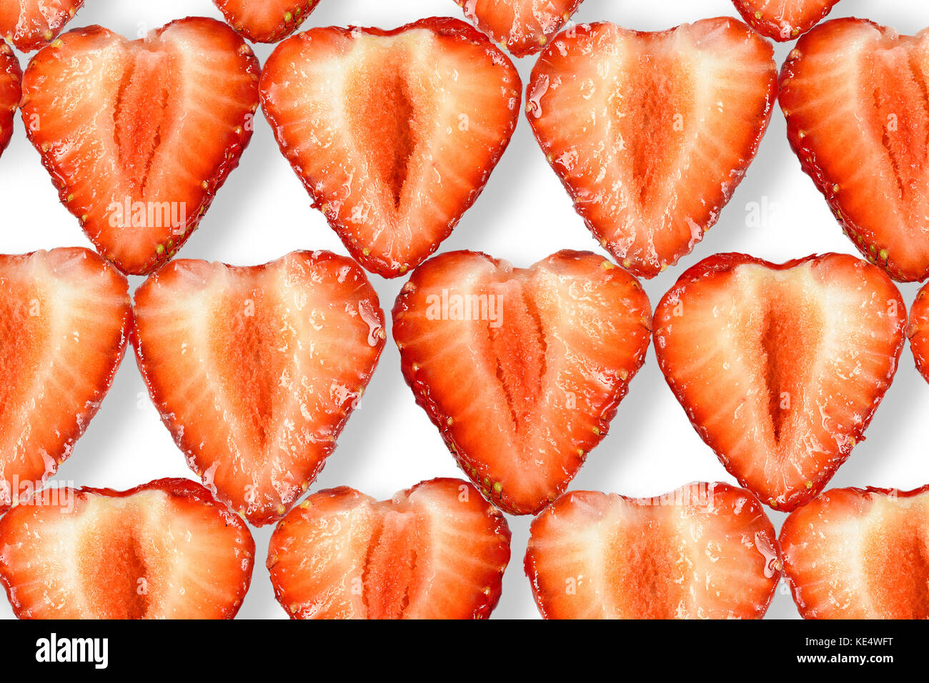 Strawberry Cuts Arranged As Wallpaper On White Stock Photo