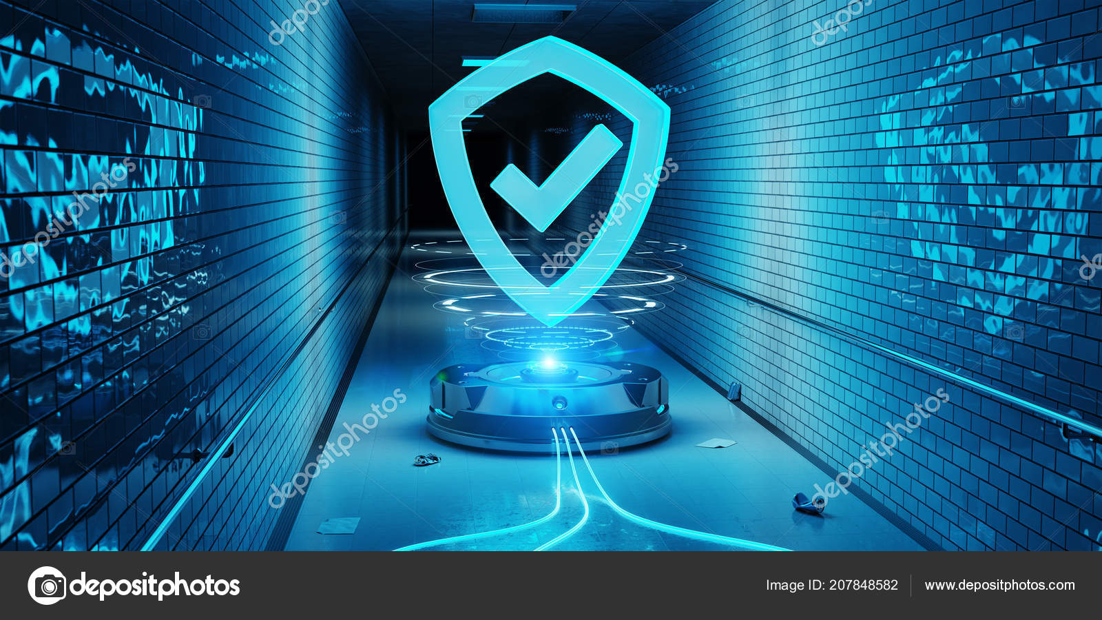 Blue Underground Cyber Security Hologram Digital Shield Rendering