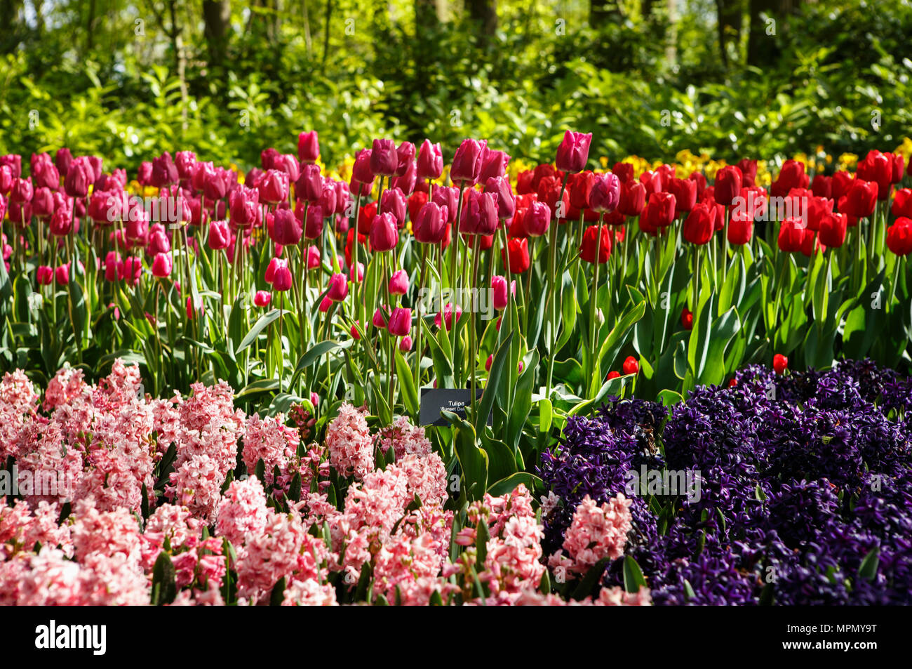Beautiful Colorful Violet Dahlias Red Tulips Flowers Bloom In