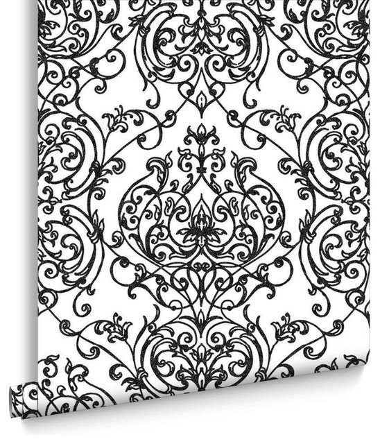 Empress Damask Black White Wallpaper Contemporary Wallpaper