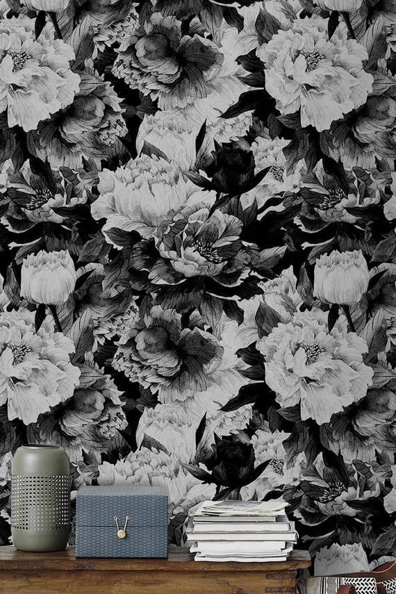 Dark Rose Wallpaper Self Adhesive Wallpaper Temporary Floral Etsy