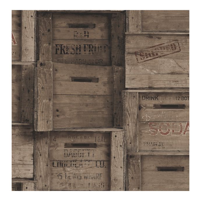 A Street Prints Reclaimed Dark Wood Crates Wallpaper Bed Bath