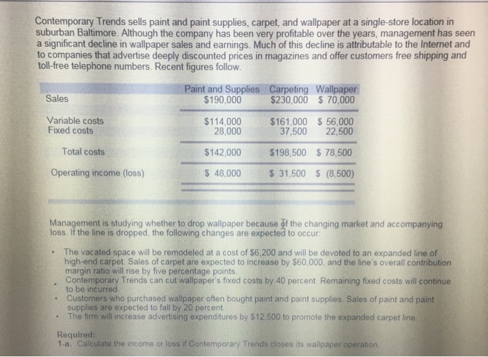 Solved Contemporary Trends Sells Paint And Paint Supplies