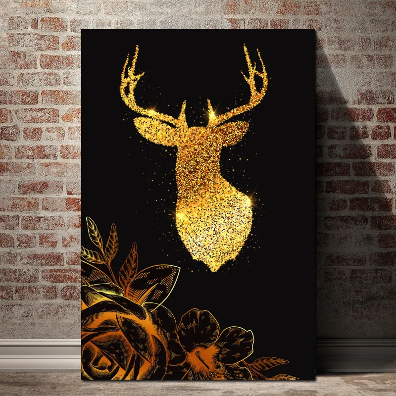 Modular Poster Pictures Wall Art Printed Golden Platinum Deer Head