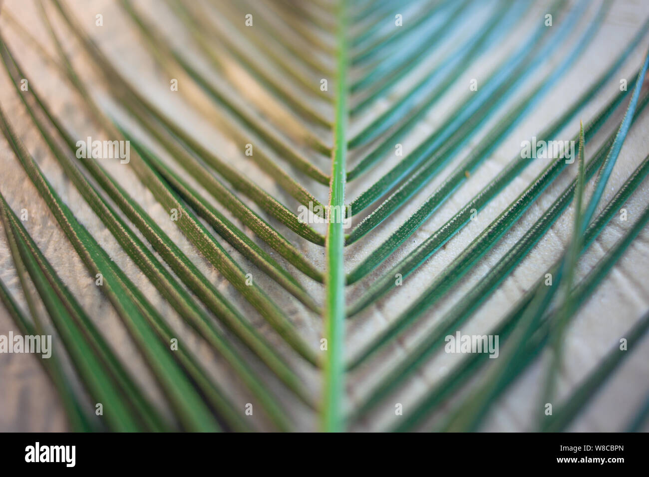 Tropical Beach Green Palm Leaf Lies On The White Fine Sand Close