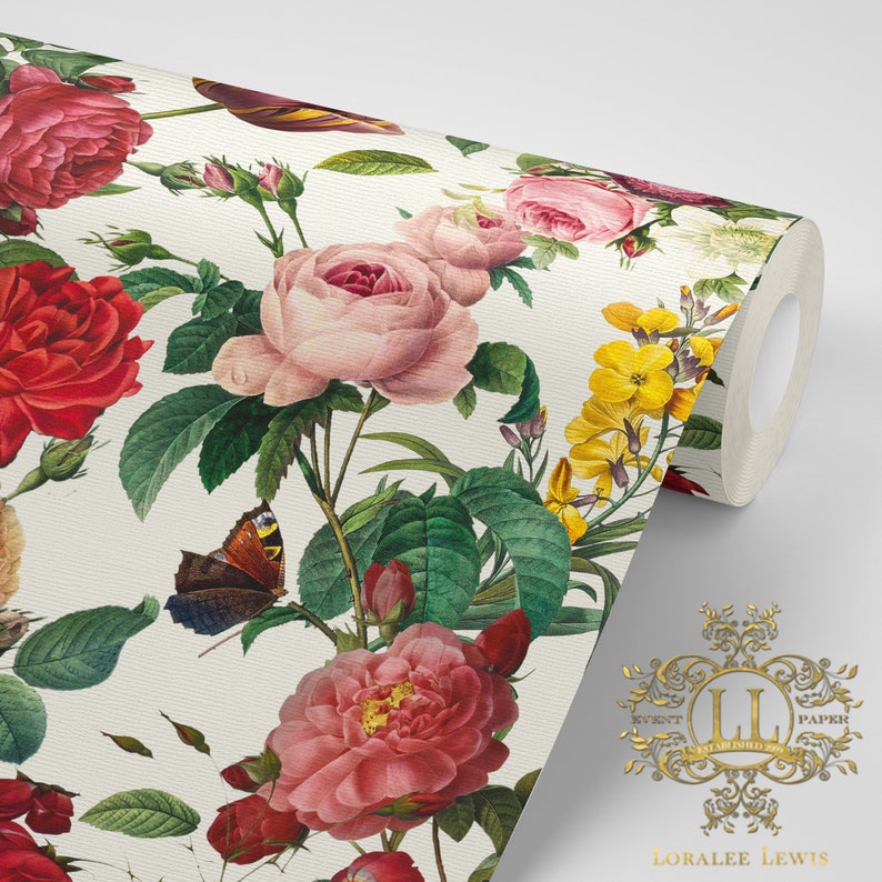 Dollhouse Miniature Wallpaper Fruit Roses 20 5 X 10 5 Sheet