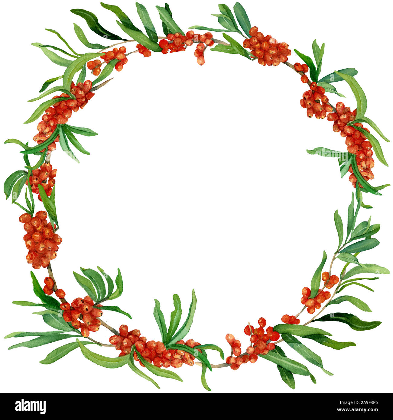 Watercolor Hand Drew A Round Frame Of Sea Buckthorn Branches