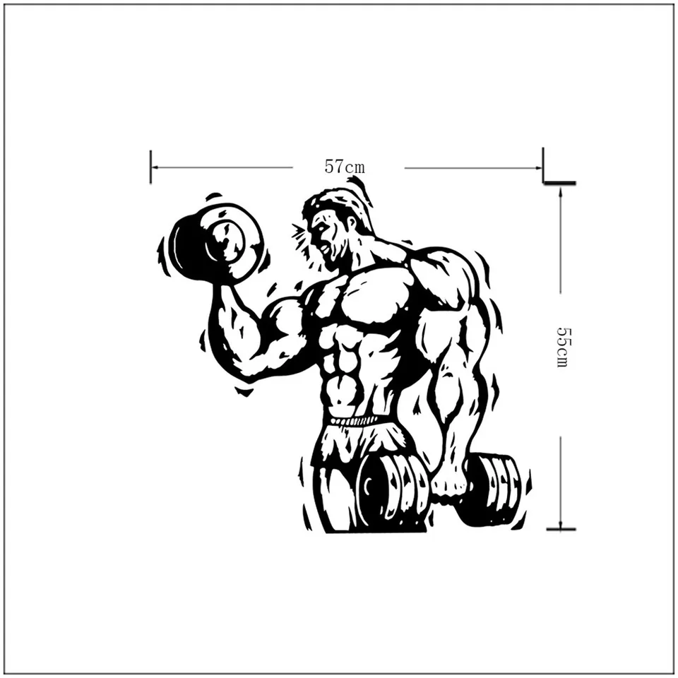 Creative Dumbbell Male Fitness Muscle Man Wall Stickers Pvc Wallpaper For Gym Fitness Club Decor Self Adhesive Mural