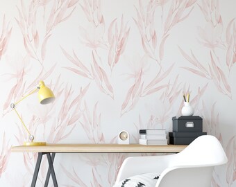 Removable Water Activated Wallpaper Mostera Leaf Dusty Pink Pink