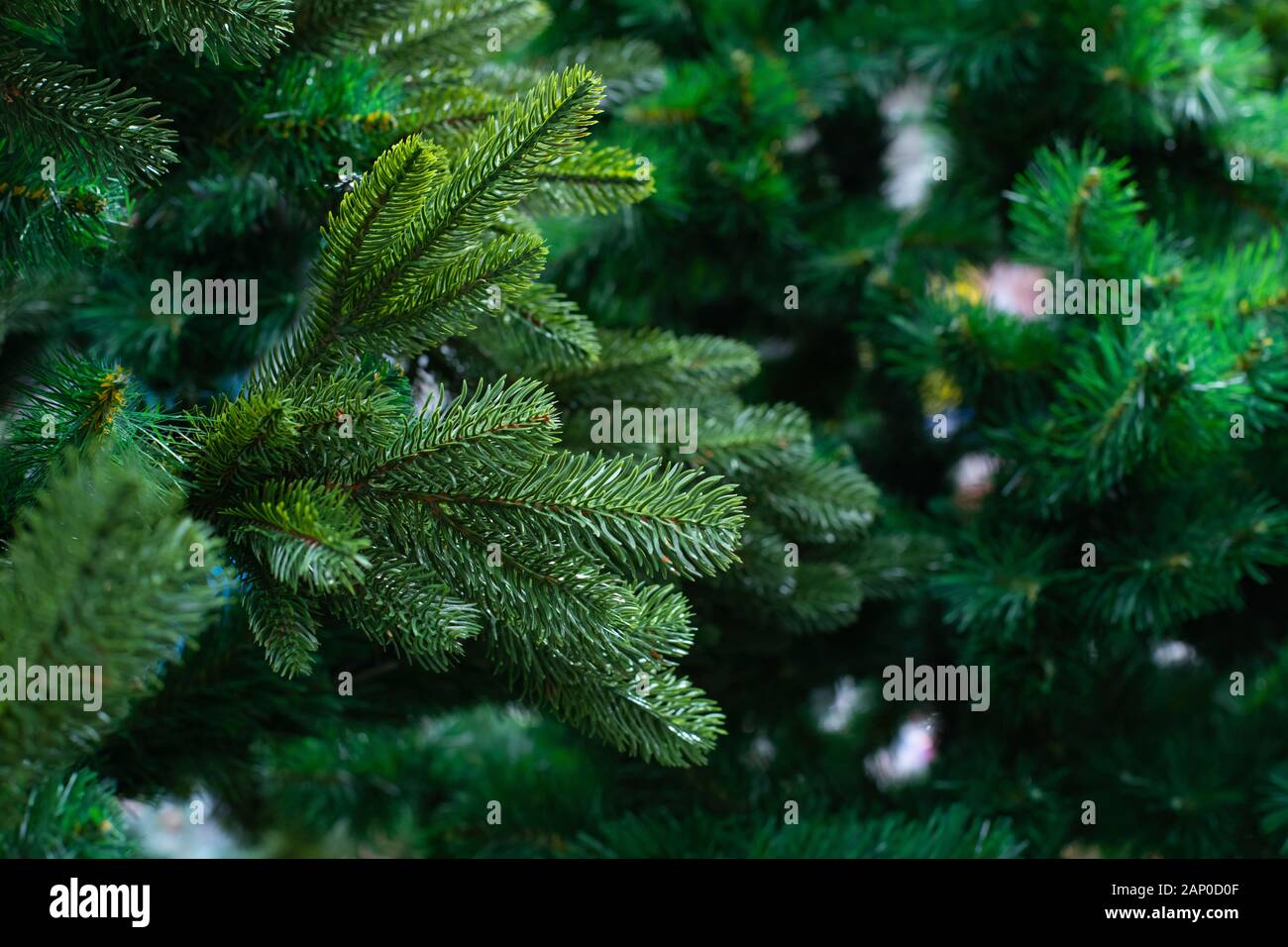 Artificial Christmas Fir Tree Green Branch Close Up Background
