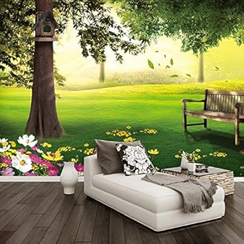 Lwcx Green Grassland Tree Nature Landscape 3d Mural Design Cozy