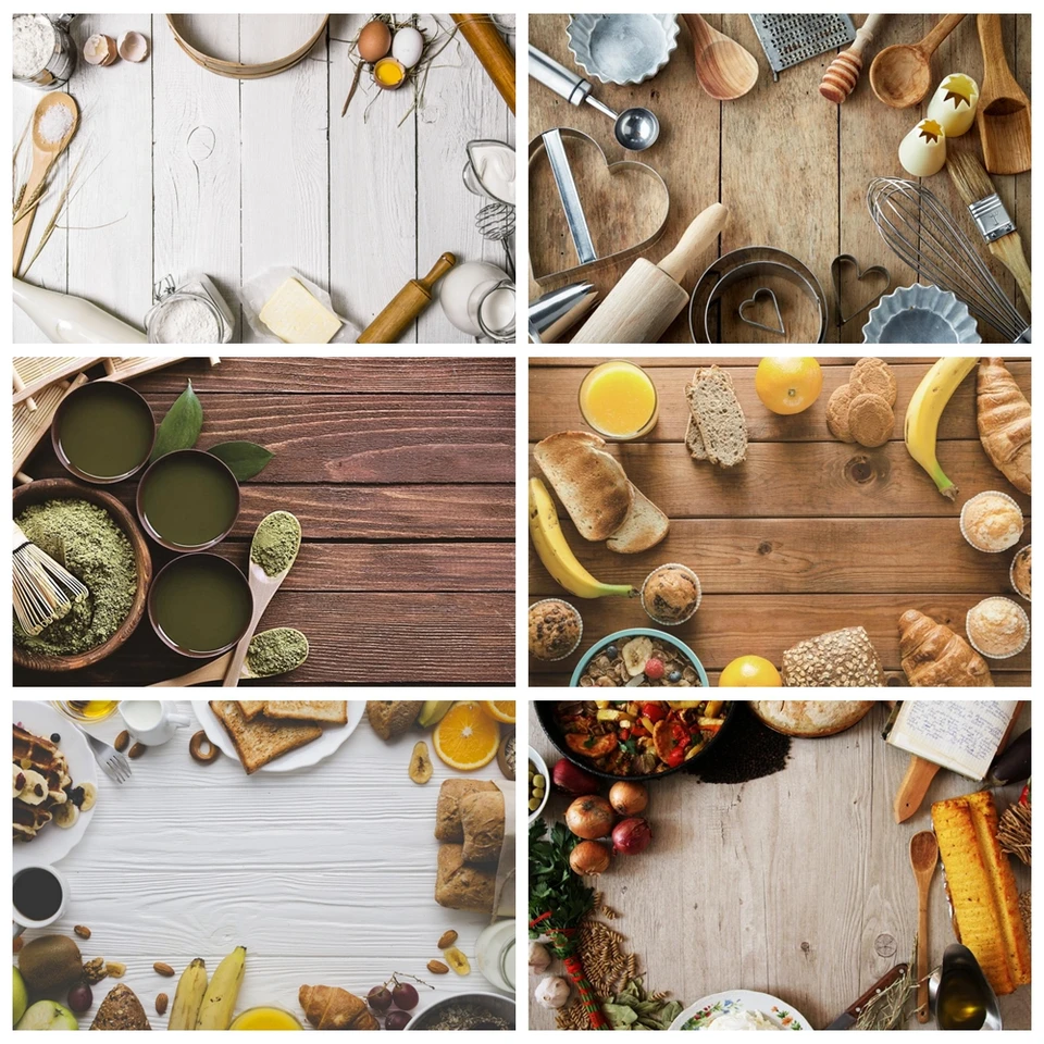 Laeacco Gray Wooden Boards Kitchen Tools Egg Wallpaper Pet Doll