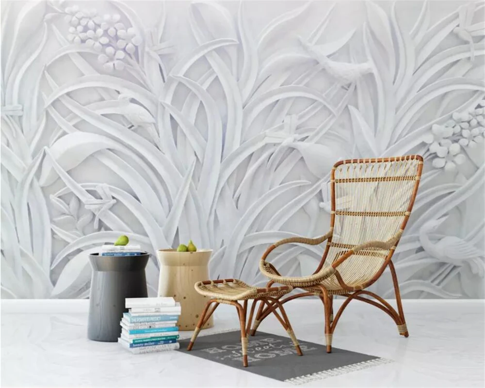 Beibehang Custom Wallpaper Embossed White Plant Flower Three