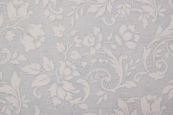 1960s Vintage Wallpaper Textured Embossed White Floral On Blue Etsy