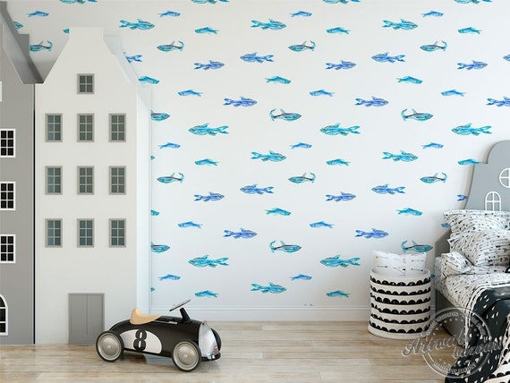 Seaworld Fish Wallpaper Art Wall Mural Unique Wall Decal Etsy