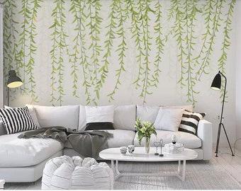 Watercolor Hanging Willow Wallpaper Wall Mural Hand Painted Etsy