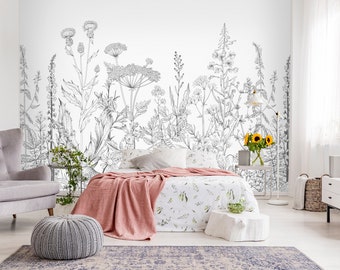 Wild Flowers Removable Wallpaper Garden Flowers Wall Mural Etsy