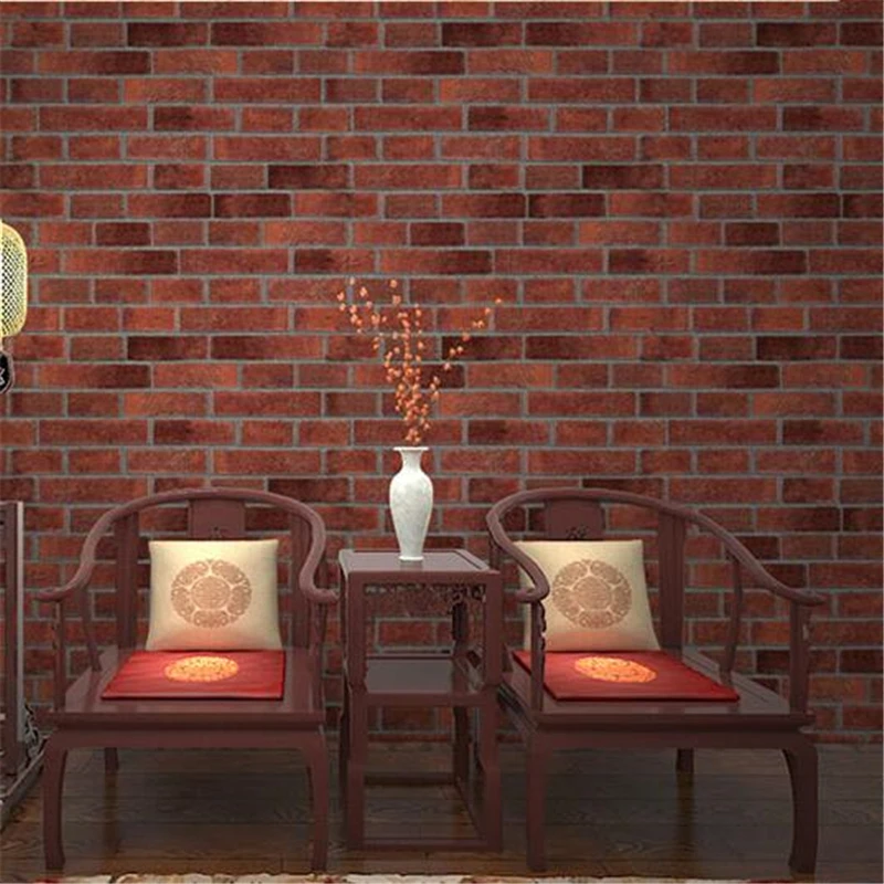 Wellyu Chinese Vintage Imitation Stereo Fake Brick Wallpaper Red