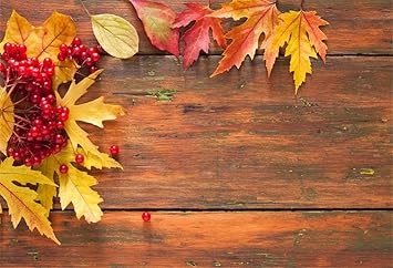 Amazon Com Csfoto 5x3ft Background Red Berry Maple Leaves Wood Board Photography Backdrop Autumn Season Fall Yellow Leaf Event Theme Party Child Digital Portrait