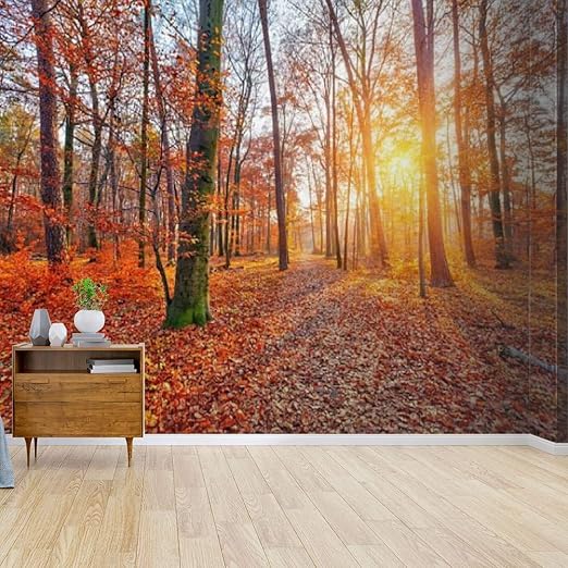 Amazon Com Recethrows Wall Mural Sunlighted Autumn Forest Red