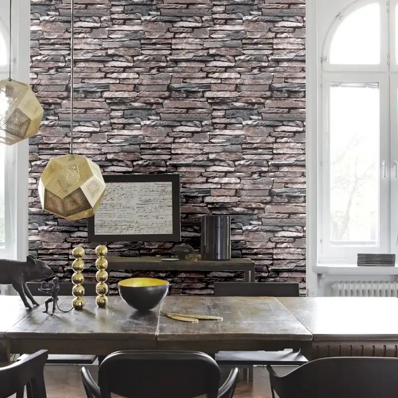 Wellyu New Wall Paper Chinese Style Fake Stone Striped Restaurant