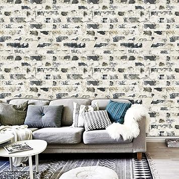 Faux Rustic Brick Wallpaper Gray White Amazon Com
