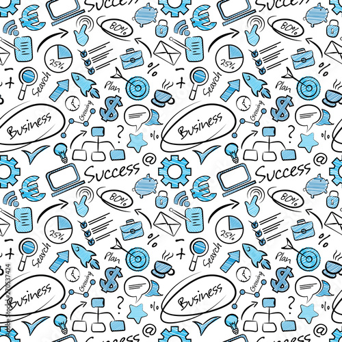 Seamless Pattern With Business Icons In Doodle Style Funny