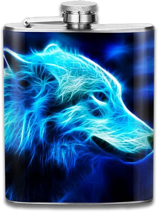 Blue Fire Wolf Wallpaper 7 Oz Hip Stainless Flask Amazon Ca Home