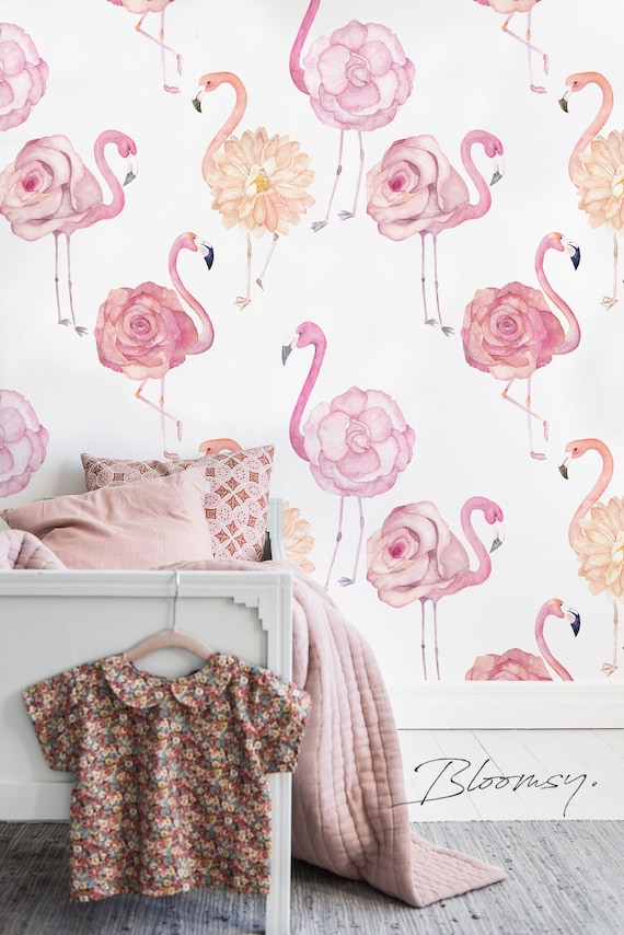 Cute Flamingo Removable Peel And Stick Wallpaper Etsy Peel And